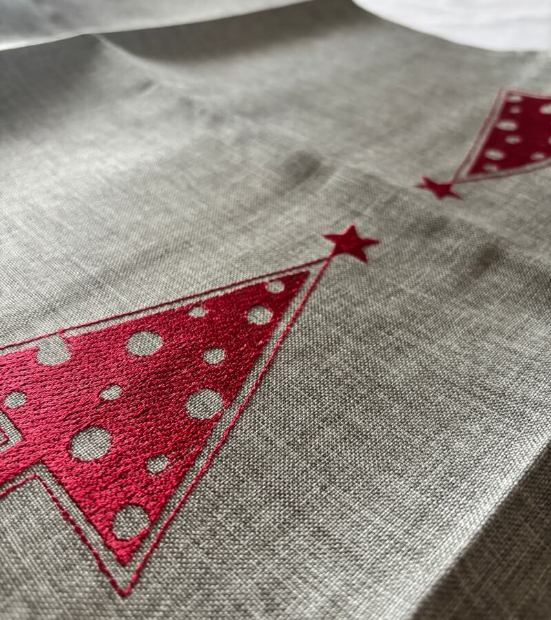 Jeśli chcesz szybko dodać świątecznego ciepła jadalni i lubisz stonowane, eleganckie dekoracje, ten bieżnik z wyszywanymi choinkami będzie dla Ciebie świetnym wyborem.
