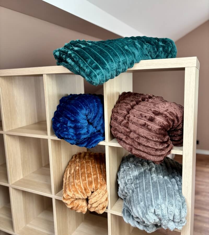 Miękki velvet (100% poliester) jest przyjemny dla skóry, nie gubi koloru i zachowuje formę po praniu. Tkanina jest lekka, a jednocześnie “mięsista”, dzięki czemu koc daje uczucie komfortu bez nadmiernego obciążenia. Szybko schnie i nie wymaga prasowania – wystarczy odświeżyć w 30°C.