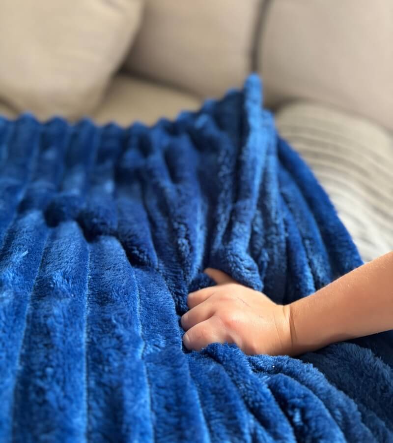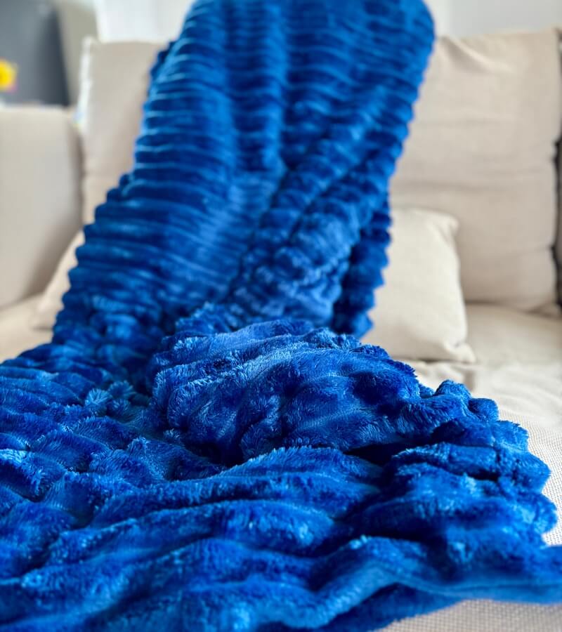 Mikrofibra velvetowa (100% poliester) jest wyjątkowo miękka, nie uczula i łatwo ją odświeżyć. Koc nie mechaci się, nie blaknie i szybko schnie. To praktyczny wybór na co dzień – zarówno do otulenia, jak i jako mała narzuta.