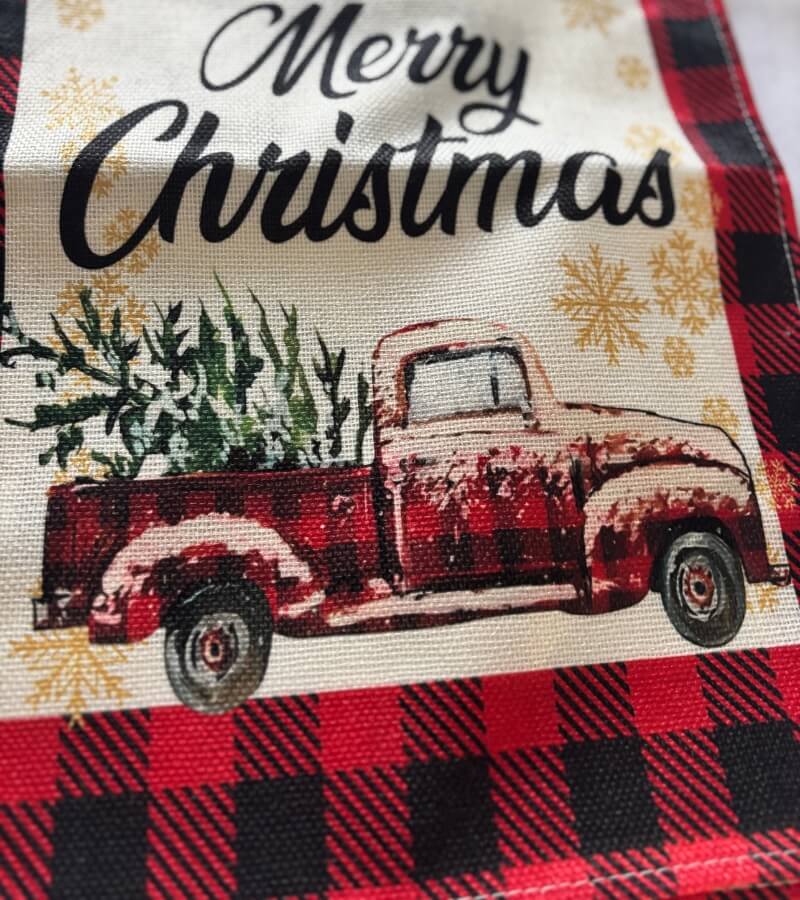 Uszyty w 100% z lnu, ma szlachetną strukturę i pięknie układa się na blacie. Jednostronny nadruk łączy klasyczną kratę z ilustracją świątecznego pick-upa – dzięki temu bieżnik świetnie odnajduje się w aranżacjach scandi, klasycznych i rustykalnych.