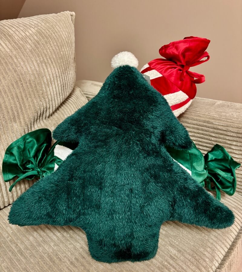 Jeśli szukasz miękkiej, świątecznej poduszki w kształcie choinki, która równie dobrze zdobi, co umila odpoczynek – „Zimowy Puszek” będzie strzałem w dziesiątkę.