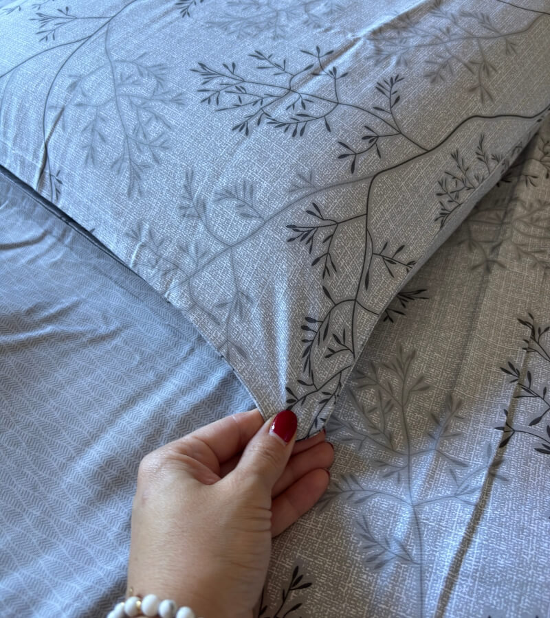 W dużym rozmiarze 200×220 cm pościel Amelia tworzy w sypialni efekt hotelowej elegancji. Jasnoszare tło jest bazą, która nie męczy wzroku i pięknie odbija światło, a subtelny botaniczny rysunek dodaje całości kobiecej miękkości. Jeśli szukasz pościeli z bawełny 200×220, która będzie jednocześnie neutralna i dekoracyjna – ten komplet spełni oba warunki.