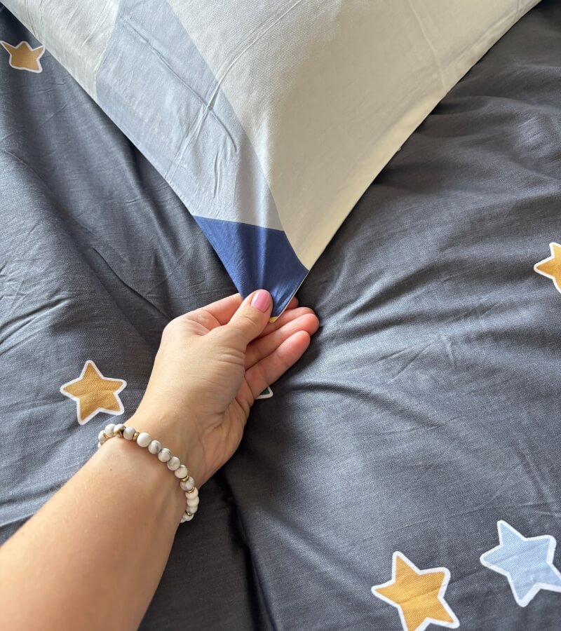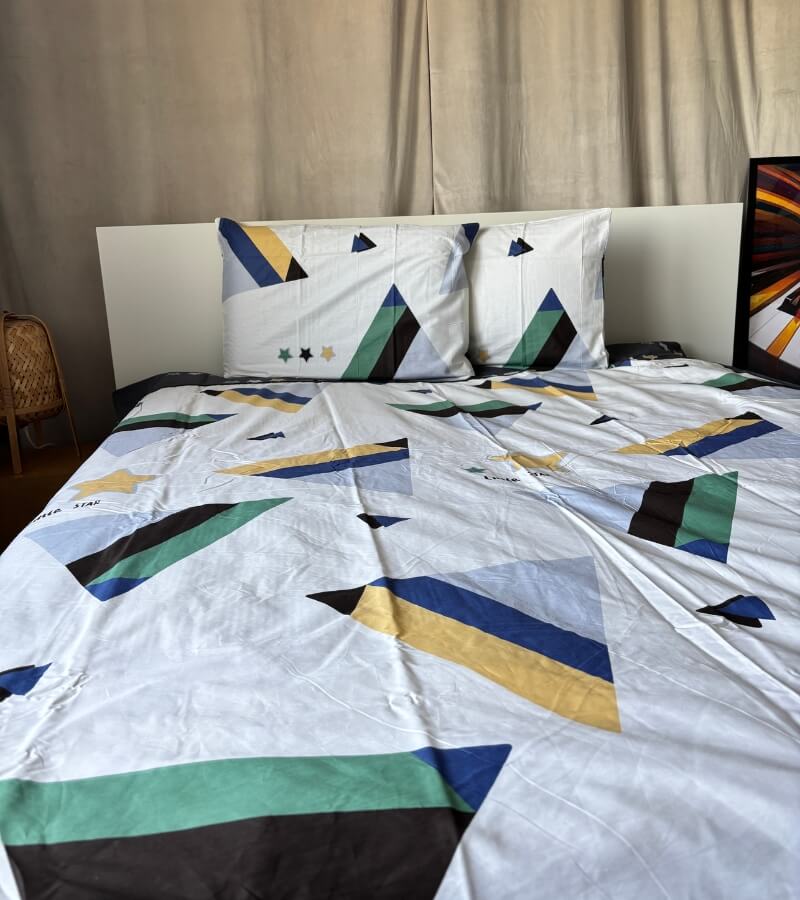 Jeśli szukasz pościeli bawełnianej 160×200, która łączy wygodę i świeży design, „Geometria z Gwiazdką” będzie świetnym wyborem.