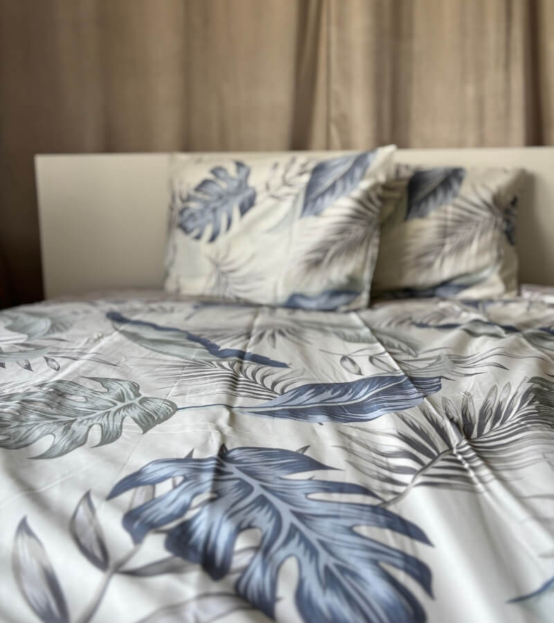 Jeśli szukasz pościeli bawełnianej 200×220, która łączy naturalny komfort z modnym, delikatnym wzorem – „Niebieskie Liście” będą świetnym wyborem.