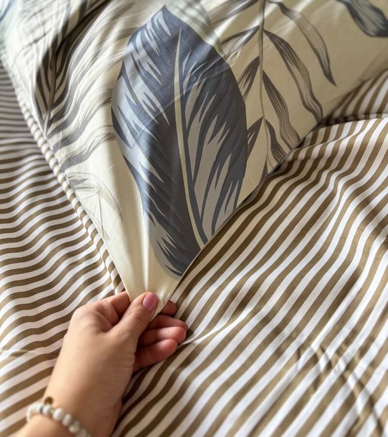 Dla kogo? Dla osób, które lubią czyste, jasne wnętrza z nutą natury i stawiają na praktyczne rozwiązania. Jeśli szukasz połyskującej satyny – wybierz inny komplet; tu liczy się naturalny, bawełniany dotyk i subtelny wzór.