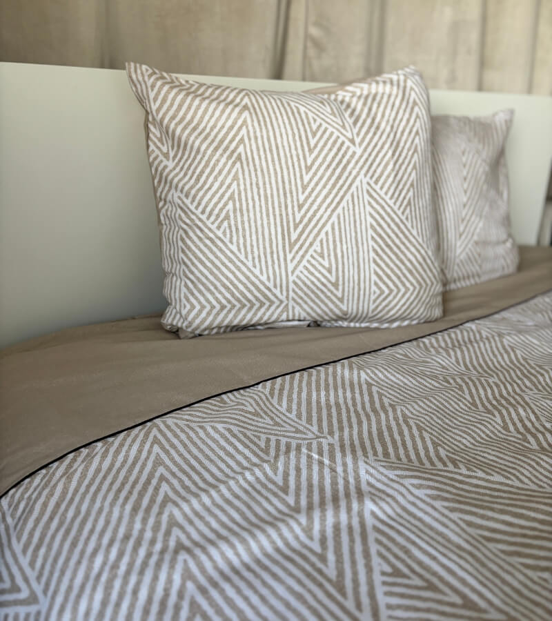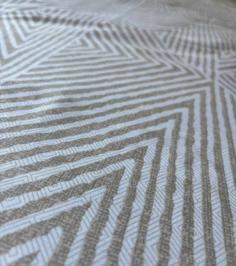 Otul sypialnię spokojem – ta pościel bawełniana 200×220 w geometryczny, piaskowy wzór porządkuje przestrzeń i tworzy bazę dla minimalistycznych aranżacji. Lekka, przewiewna tkanina otula miękko i pomaga się wyciszyć po intensywnym dniu.