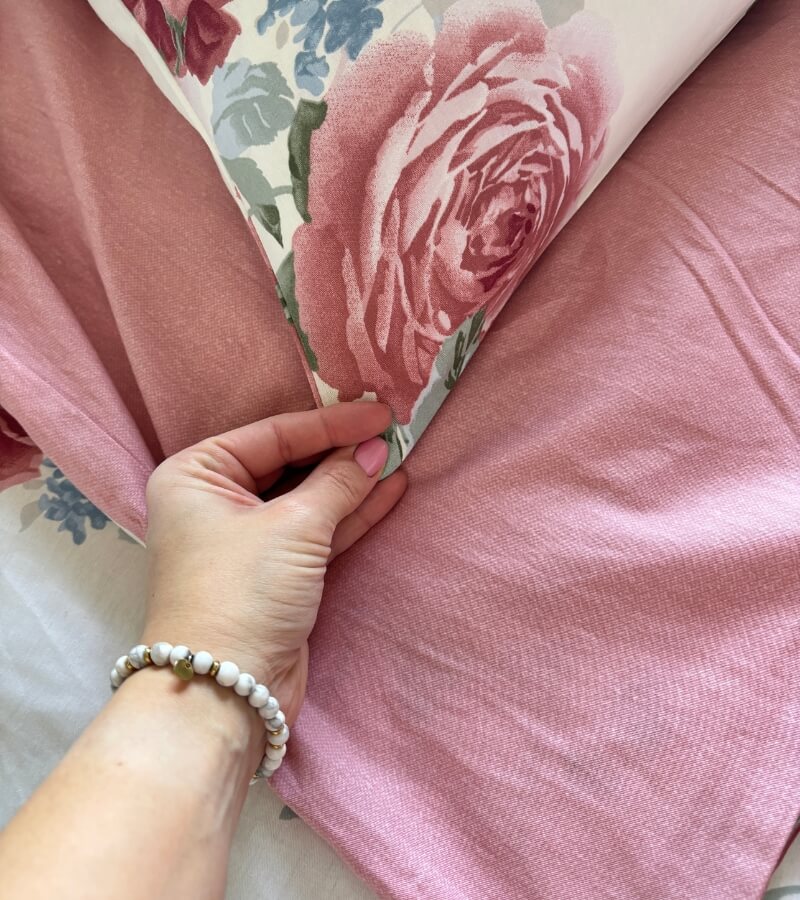 Na tle innych zestawów „Różane Pastelowe” wyróżnia się spójną stylistyką (poszwa + 2 poszewki 70×80), solidnym wszyciem zamków oraz łatwą pielęgnacją: pranie w 40°C, suszarka bębnowa i prasowanie do 150°C. Dodatkowo rekomendujemy pranie przed pierwszym użyciem – na lewej stronie i z zasuniętymi zamkami – aby tkanina dłużej wyglądała świeżo.