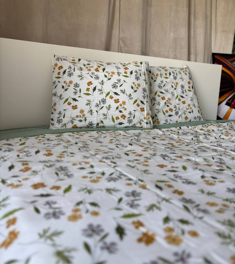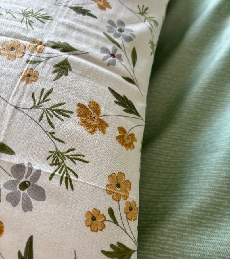 Wskazówka stylizacyjna: połącz z prześcieradłem w kolorze jasnej szałwii albo ecru. Jedna dekoracyjna poduszka w ciepłej żółci podbije „słoneczny” charakter zestawu.