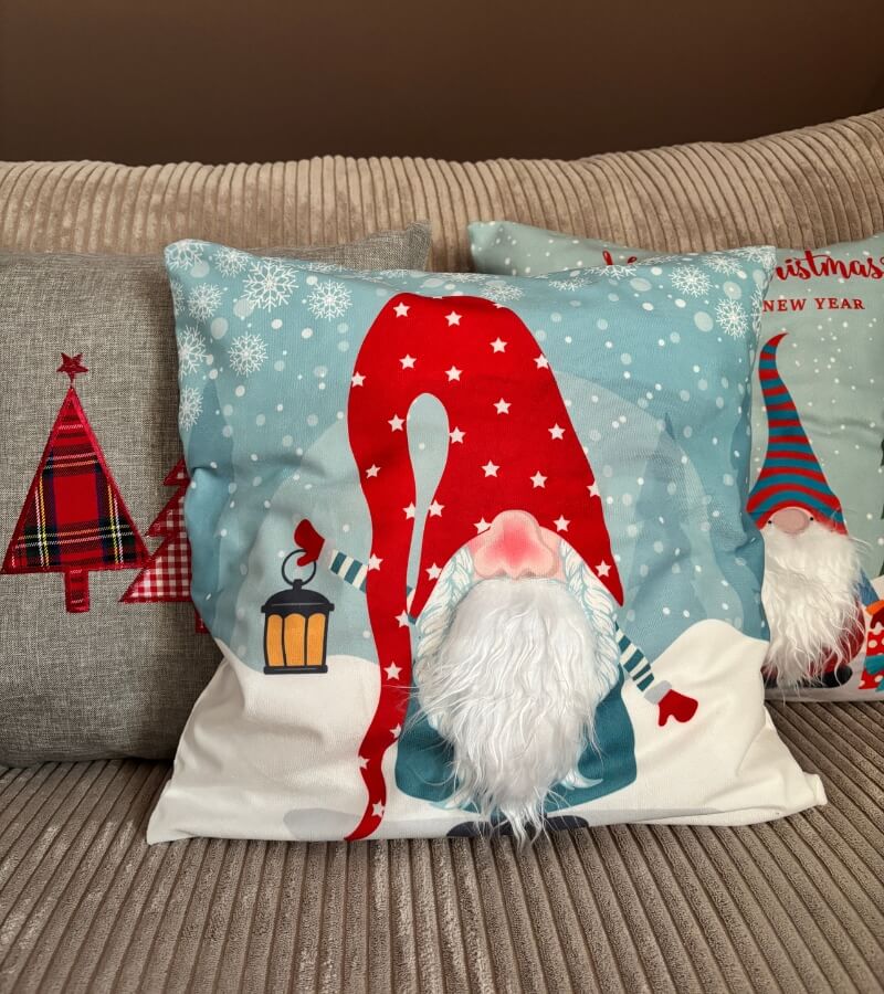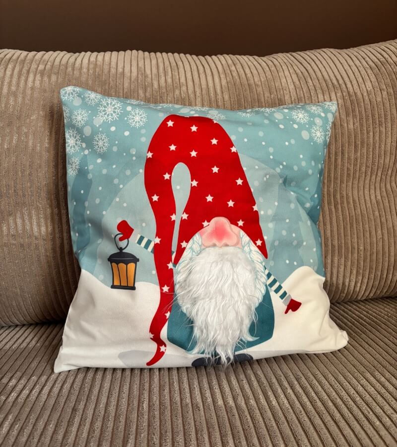 Szukasz wesołej, przytulnej dekoracji na święta? Poszewka 40×40 ze skrzatem i brodą będzie świetnym wyborem do Twojego domu.