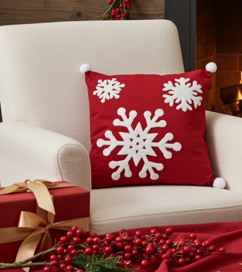 Jeśli szukasz poszewki świątecznej, która w prosty sposób zamieni Twój salon w ciepły, zimowy azyl, a poduszka w śnieżynki ma być wyrazistym, ale nadal eleganckim akcentem – ta poszewka będzie dla Ciebie świetnym wyborem.