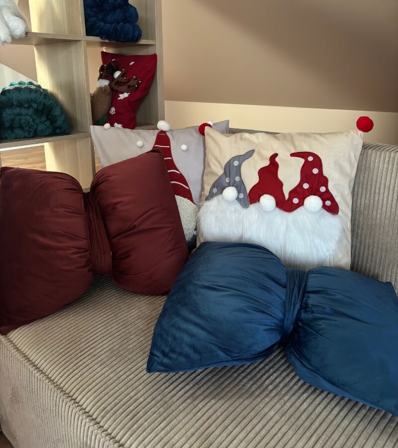 Poduszka kokarda granat 45×55 cm – odrobina świątecznej magii w Twoim domu